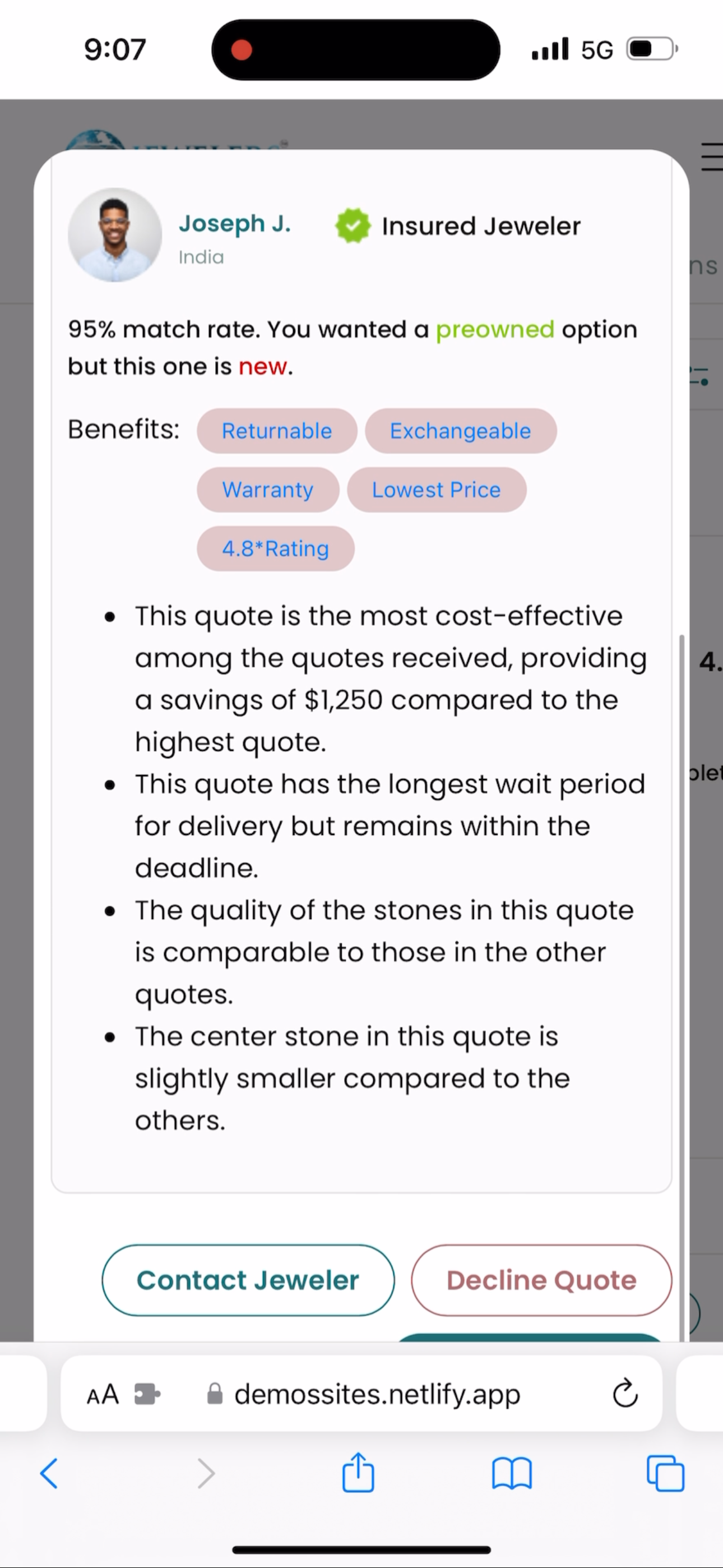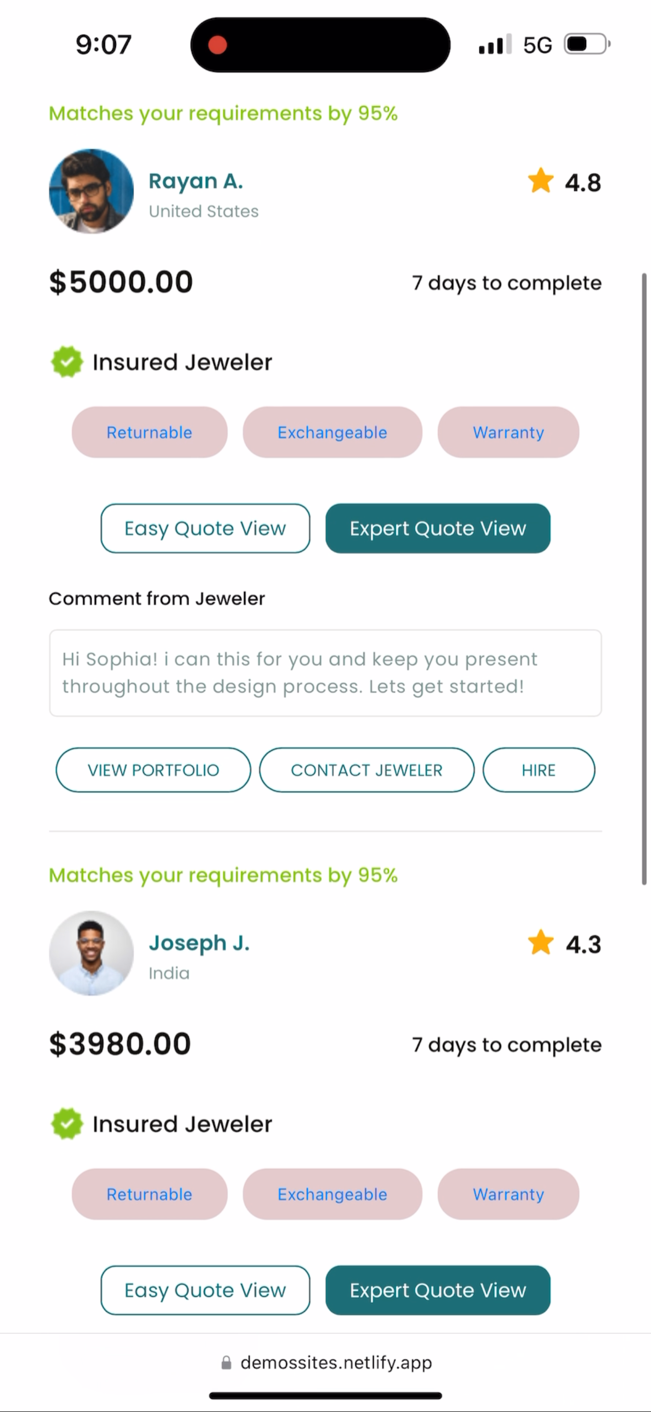 Review personalized quotes and portfolios from verified trusted jewelers. Quotes come directly to you for a transparent shopping experience.